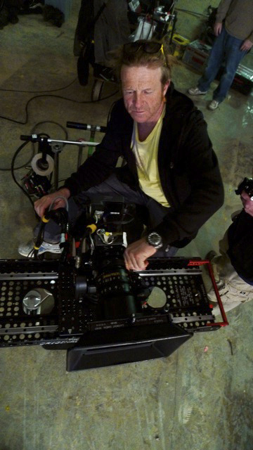 Dod Mantle testing the SI 2Ks“For the movie we made a special cage for Dod Mantle. We actually laser engraved his name on it. The cage was multi purpose, it allowed us to mount the camera anywhere and also has a power distribution box so that we can power many things off of it. That’s the one thing with the digital, the weak point is all the cable everywhere, it’s different to film. Everything we did for the film was to keep it as clean and simple as possible. Anthony wanted a simplified set-up and that to me is the whole essence of digital anyway. I think digital should offer people things that film can’t, it should be smaller, faster and should offer immediate gratification.