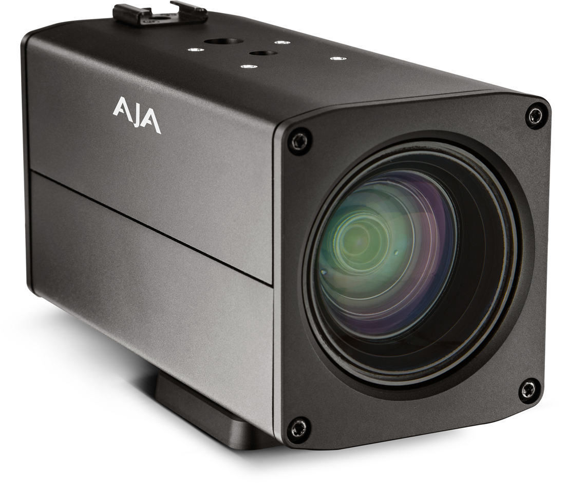 AJA has launched their RovoCam at the ISE (Integrated System Europe) Show in Amsterdam. RovoCam is a block camera for industrial, corporate, security, ProAV and broadcast applications using Sony optics with built-in 12x optical and up to 20x zoom. What sets RovoCam apart from other cameras in its category is an integrated HDBaseT interface supporting uncompressed video, power, stereo audio and RS-232 control over a single CAT 5e/6 cable running at lengths of up to 100 meters. This is where the AJA expertise comes in.