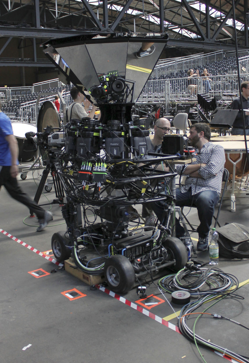 The Omnicam, a new panoramic camera system developed by the FascinatE Consortium (Format-Agnostic SCript-based INterAcTive Experience), uses six ARRI ALEXA M cameras to capture footage in ultra-high resolution. Over the weekend May 26th and 27th, the Omnicam was used at Arena Hall Berlin to record a dance performance of the Carmen Suite by the Berlin Philharmonic. This prototype system allows users to interactively view and navigate the video panorama of the live event – no matter what display device they are using. Meanwhile, synced audio automatically adjusts to match the selected view.