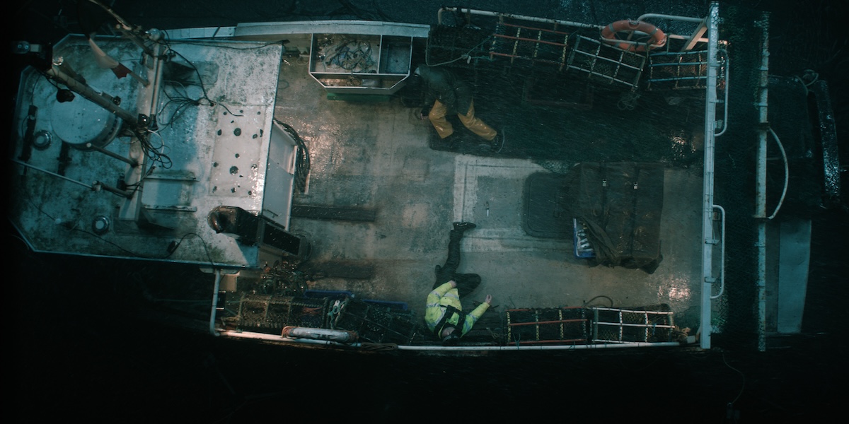 Boat Story delights viewers with an array of visually stunning shots that captivate throughout – and one stands out as a source of pride for Beattie in particular. “There’s a top-down shot where you see two bodies on the deck of the boat, and the camera pulls back slowly to reveal the stormy ocean surrounding it,” she remarks.