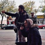 Trent Opaloch on set behind director Neill Blomkamp and the RED Epic camera.