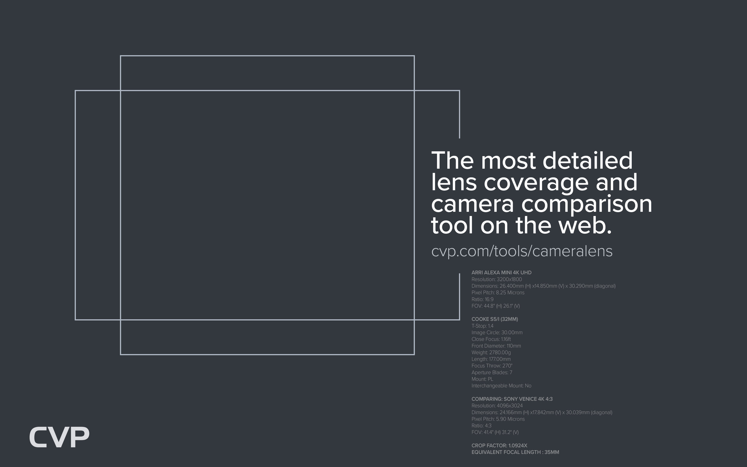 CVP, a broadcast and professional video solutions provider in the UK and Europe, has developed a sophisticated yet easy-to-use online tool that offers a visual representation of coverage of lenses when paired with various sensor formats, and different cameras using the same lens. This useful tool, which can be seen in the CVP Creative Experience at BSC Expo 2019, gives filmmakers a first indication of the camera equipment that may – or may not – suit their project.