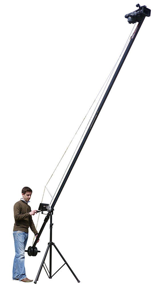 If you’ve ever envied those great crane shots across audiences and swooping shots above huge expanses your dreams may have come true with the new Hague Camera Supports’ new K9 CamCrane. The K9 Camcrane reaches a respectable 5 metres in height and is supplied with its own stand and camera tilt control.