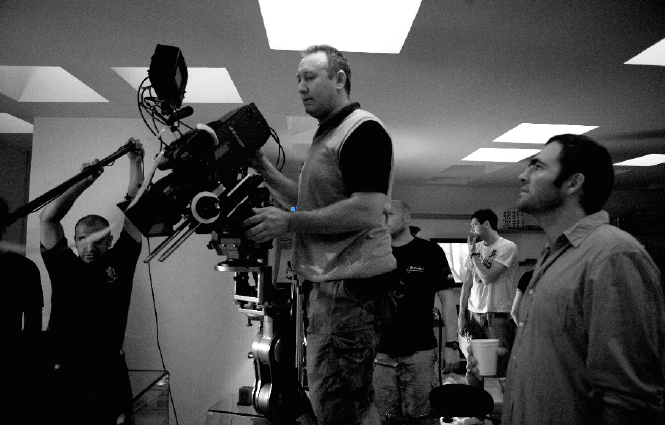DP Mark Hamilton handles the D21 while Director Adrian Vitoria looks onWe’d also prepared to disable the shutter, which the D21 does, in case we had less light than intended – particularly when it came to close up detail of scratching and nails being ripped off. However, without the anamorphic lenses (we used Zeiss master primes) I was more comfortable shooting wide open (at 180º) which actually gave the desired shallow depth of field that we appreciate from 35mm.