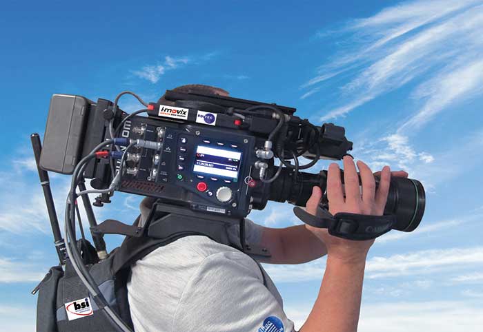 “The integration work carried out by BSI was excellent. Tony Valentino and his team produced a very neat back pack solution, the backpack containing all of the RF equipment and one of two batteries, the i-Movix interface module being camera mounted together with the second battery. The result is a true dual output hand-held camera will full camera controls – just as it would be with a SMPTE fibre connection.”