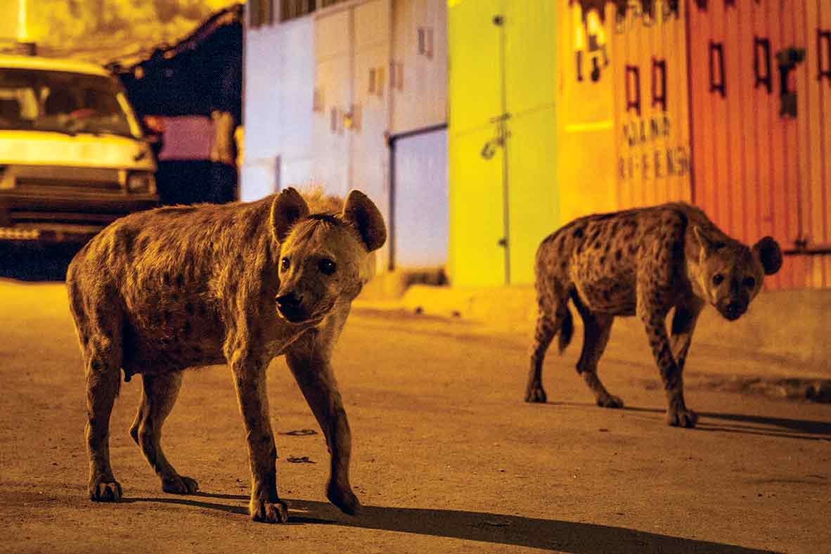 “Hyenas have a spirit life, according to the beliefs of many of the people in Harar, as they can see evil djinn (genies) and even eat them. To introduce the hyenas in a dramatic way, coming out of the darkness, as if hunting for djinn, I strapped a bright LED torch to the lens barrel, so its light would be reflected by the tapetum at the back of the hyenas’ eyes, giving them an unearthly eye-shine.”