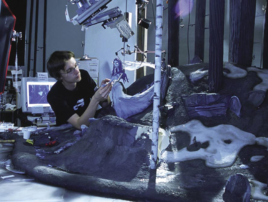 “Most features shoot in 12 to 14 weeks,” notes Lucas. “With Corpse Bride it’s 52 weeks! We only get two minutes of film a week with stop-motion. One shot can take three weeks. Even so, I’m still refining the story on a daily basis with co-director Mike Johnson.” (Unlike on Frank Miller’s Sin City, the rules of the Directors Guild of America don’t prohibit co-directors on animation.)