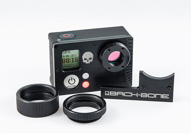 SeeSense managing director Nigel Paine said “Ribcage enables you to fit pretty much any lens you could want on to your GoPro.  It will accept C-mount, CS-mount and M12 mount straight on to the camera.  You can also breathe life into your old manual SLR lenses from Nikon, Canon or Pentax, etc with the use of an adaptor.  Ribcage comes complete with CS and C-mount adapters as well as the option to remove the IR cut filter for specialist use including night filming, astronomy, etc.  It also comes fitted with a three position tripod mounting plate, something you never saw on a GoPro.”