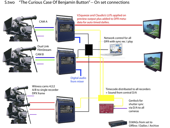 “The witness cameras are on set where you had the person who wasn’t Brad with the blue sock on his head. You had your two primary cameras but you would also put cameras off on to the sides shooting at more of an angle. Those cameras might see Dolly tracks and crew but it didn’t matter, the point was that by having the four feeds Digital Domain could triangulate the exact position of that head and the shape of that head in that particular scenario. So at the most we had about eight Vipers working at any one time.”