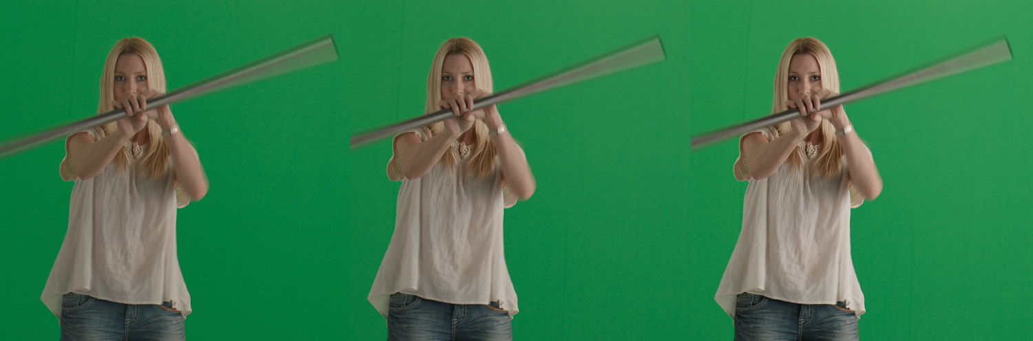 This can be seen in the twirling stick across the three shots. Each shot is the identical moment in time captured with HDRx and then combined using Red’s ‘Magic Motion’ algorithms to achieve three different blur characteristics.
