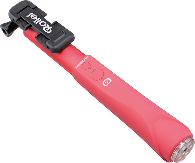 The Rollei Self Stick 4Life is extendable to 90 cm and closes to just 22 cm. The stick has a Bluetooth shutter built into the handle, which holds up to 100 hours of charge. It is able to hold smartphones up to a height of 7cm that weigh up to 0.5kg.