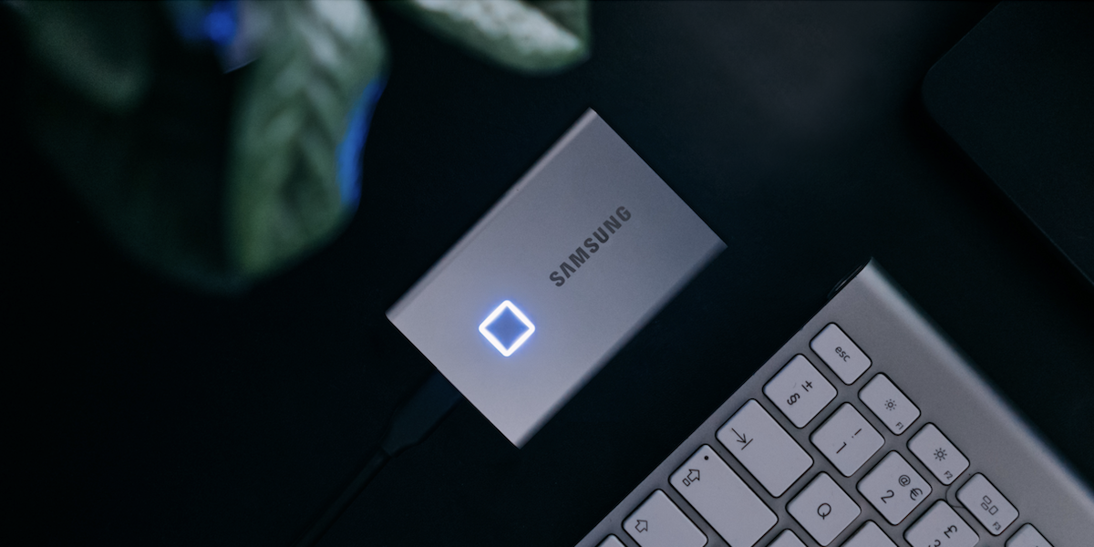 The Samsung Portable SSD T7 Touch also has an LED square that illuminates to keep you informed of its status at a glance – making life out on location much easier.