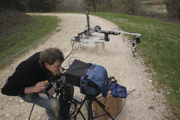 “It has the capacity for movement through six axis but the fifth and sixth aren’t that smooth so it’s easier at the moment to get up and adjust it and then sit down again. It’s got backwards and forwards, left and right, up and down, as well as what we call a swivel so it can rotate around the actual point of the lens. If you’re right next to an ant for instance you can go right round it in a complete circle. Because we’re using these wide angles lenses, around 2mm, in order to get a close-up you have to be right next to the animal. If the animal take two steps to the left you have to move two steps to the left. To do that in any other way would be impossible but with the swivel you just you have this great live feeling of being there with the animals.