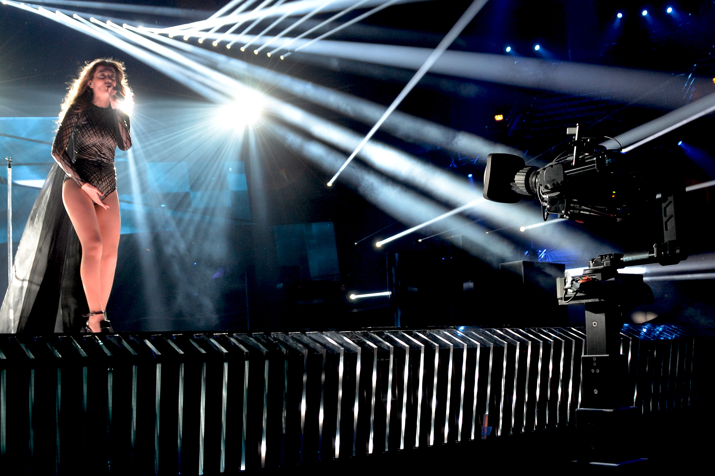 That solo operator on the finals and semi final night was Daniel Hjalmarsson, “Until now I haven’t been able to operate both the head and the movement of the tracking rig by myself.” Intuitive Aerial programmed the controller so its joystick, in addition to being used for pan, tilt, and zoom, could be rotated to move the height adjustable tower up and down.