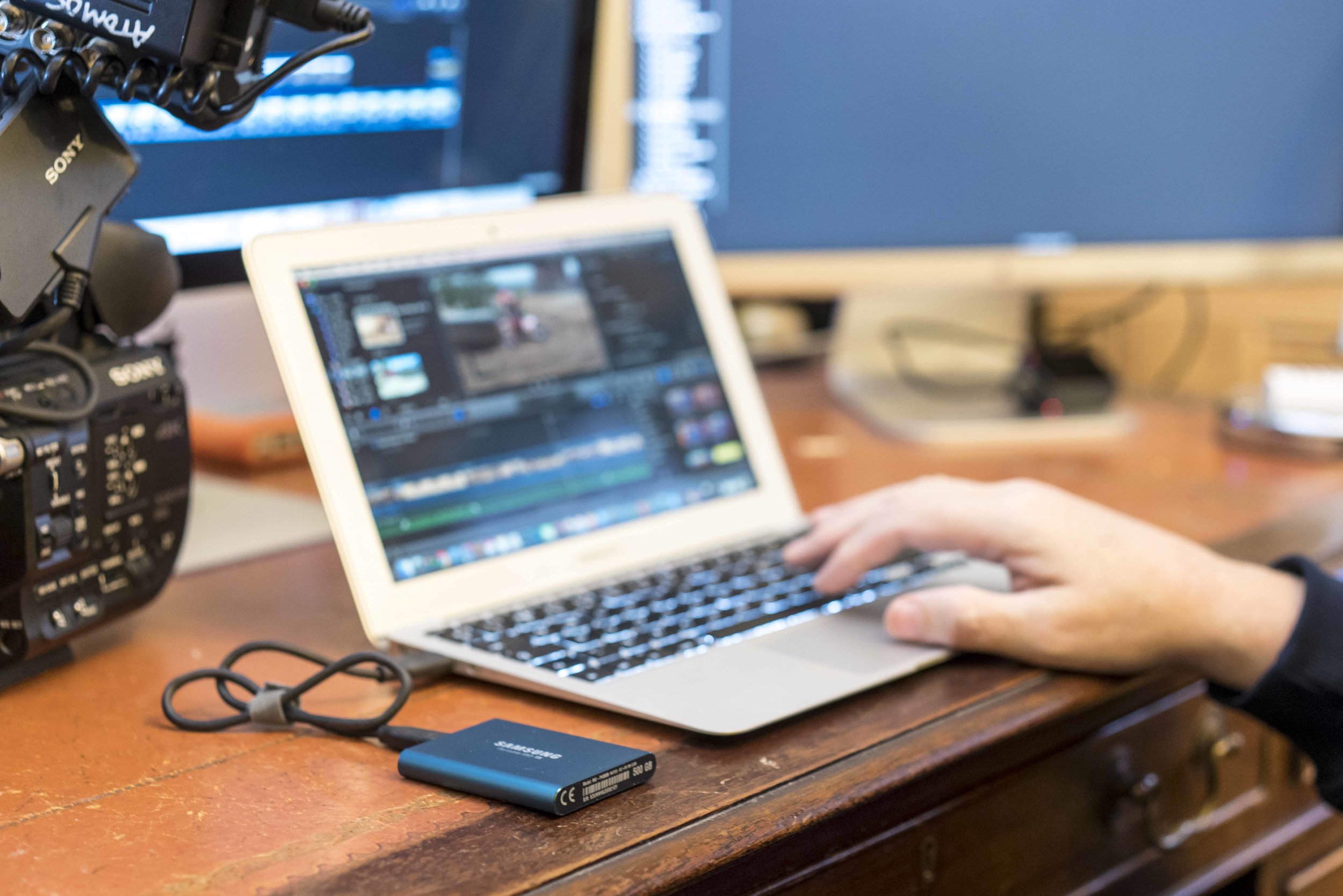 In a small film production company every purchase has to justify itself immediately. The price of some camera media can be high, but it is tempting to invest in it to allow for longer recording times. John now realises that leaping to a high cost investment might not be the best choice for him in the short term as something like the Samsung Portable SSD T5 range plugs a gap in his workflow. “To be honest before I used the Samsung Portable drive I hadn’t considered this the answer to increased workflow. As our file sizes aren’t huge, something like the 500GB drive is sufficient for our transfers, but I think the real plus is the ability to edit directly off the drive. That feels like something very new with such a small device.