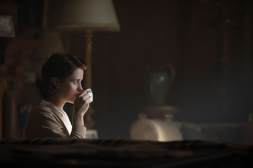 “My key light is usually my backlight, so for instance, Claire Foy is never front-lit, she is mostly side-lit but is very diffused; there is always maybe two or three diffusion layers. There are nets on the windows and another layer inside that always comes in for close-ups,” says Adriano. “The big lights coming in through the window are 18K ARRIMAX but I’m in love with the SoftSun lights, the 100K lights from Luminys. It’s a fantastic 100K, dimmable source that you can dim without changing the temperature. With it you end up saving money as you move faster, because some days I have one source outside that gives me the wide interior shots and when I move to mid shots and close-ups I just bring in a net and more diffusion layers, not another head. I love to see the set and there are no lights inside, just diffusion. I am convinced the actors like walking into a set and asking ‘is this it?’ We have marks but they have the freedom to rehearse as they want; it’s more like a play. I need a bit more time for the close-ups though, especially for Claire.”