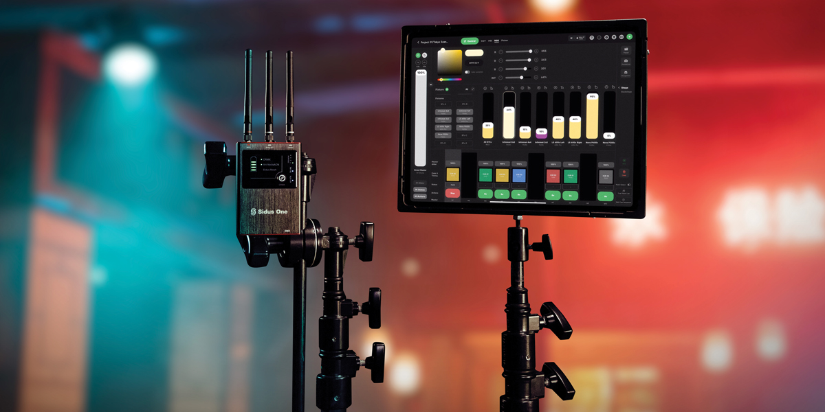 The Sidus Pro ecosystem includes the Sidus One and the Sidus Link Pro app. Sidus One – a powerful universal transceiver – enables connection to any CRMX-enabled light, while the updated Sidus Link Pro app allows cue-based control of multiple lights with zero delay.