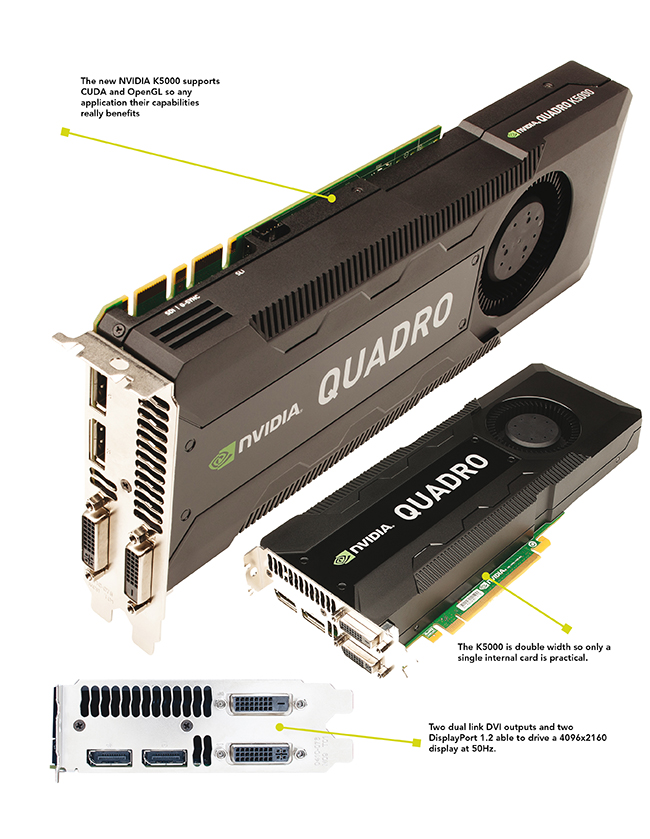 It is certainly disappointing that, from the launch of the K5000, it took Apple over a year to incorporate the drivers into Mac OS X (you need 10.8.3 or above). I would image that their focus was on the new Mac Pro. However, the NVIDIA Quadro K5000 for Mac is an excellent, if expensive way to kick up the performance of an existing Mac Pro (we’ve changed all our hard discs for SSDs too), especially if you need multiple very high pixel-count monitors, or if you do a lot of CUDA effects or 3D.
