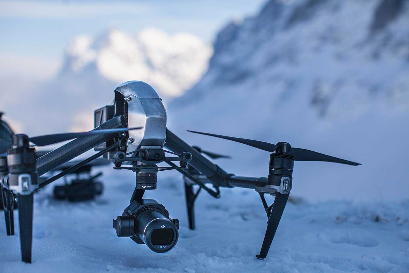 In Switzerland I was at 4200m (14,000 feet) at -30˚C with about 20mph winds and I was flying it around like I was at sea level on a nice day. I was using high altitude props, but you just wouldn’t have taken any other kit out in those conditions. Also the truth is that the human gives out before the drone so if you’re setting up say a heavy-lift drone you wouldn’t have time for what you wanted to shoot as you would be too cold. On that project it was so cold that the airframe froze absolutely solid when I brought it in but I didn’t have a problem in flight.