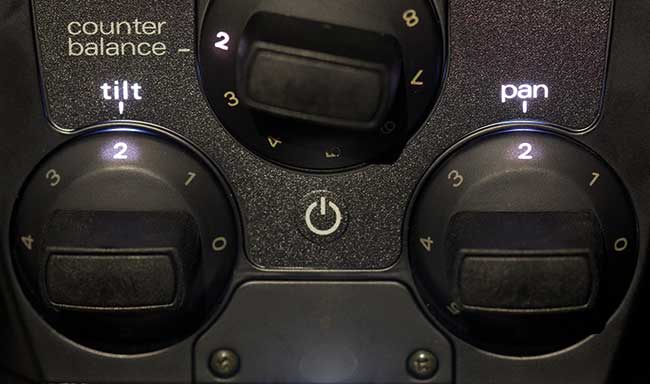 The controls for pan and tilt fluid drag, and counterbalance, are all large, detented knobs (easy to use with gloves).