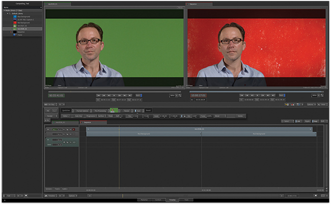 You set your timeline up in just the same way that you would in any NLE (or you have imported the timeline from your NLE of choice) – your foreground is in the track above the background plate.