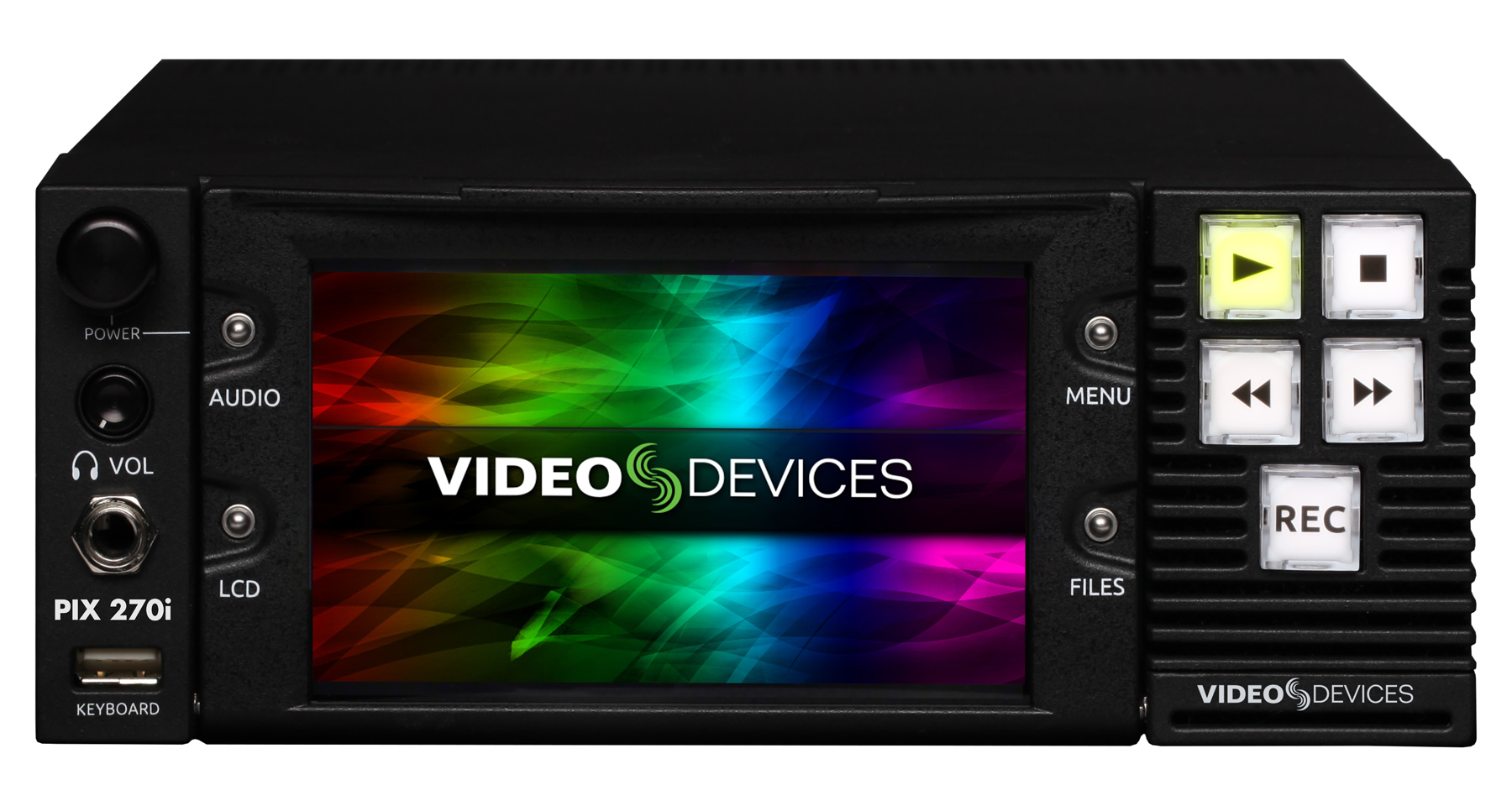 Video and audio are recorded together into a Quicktime (.mov) file using either ProRes (from 4444 down) or DNxHD. It is also possible to record audio-only as a Broadcast Wave (.wav) file. The PIX270i is able to write Broadcast Wave metadata (scene, take, notes, timecode, track names and so on) as well as QuickTime’s reel and timecode metadata. It also supports SMPTE-315M camera positioning metadata, which will record into ProRes files, but not DNxHD.